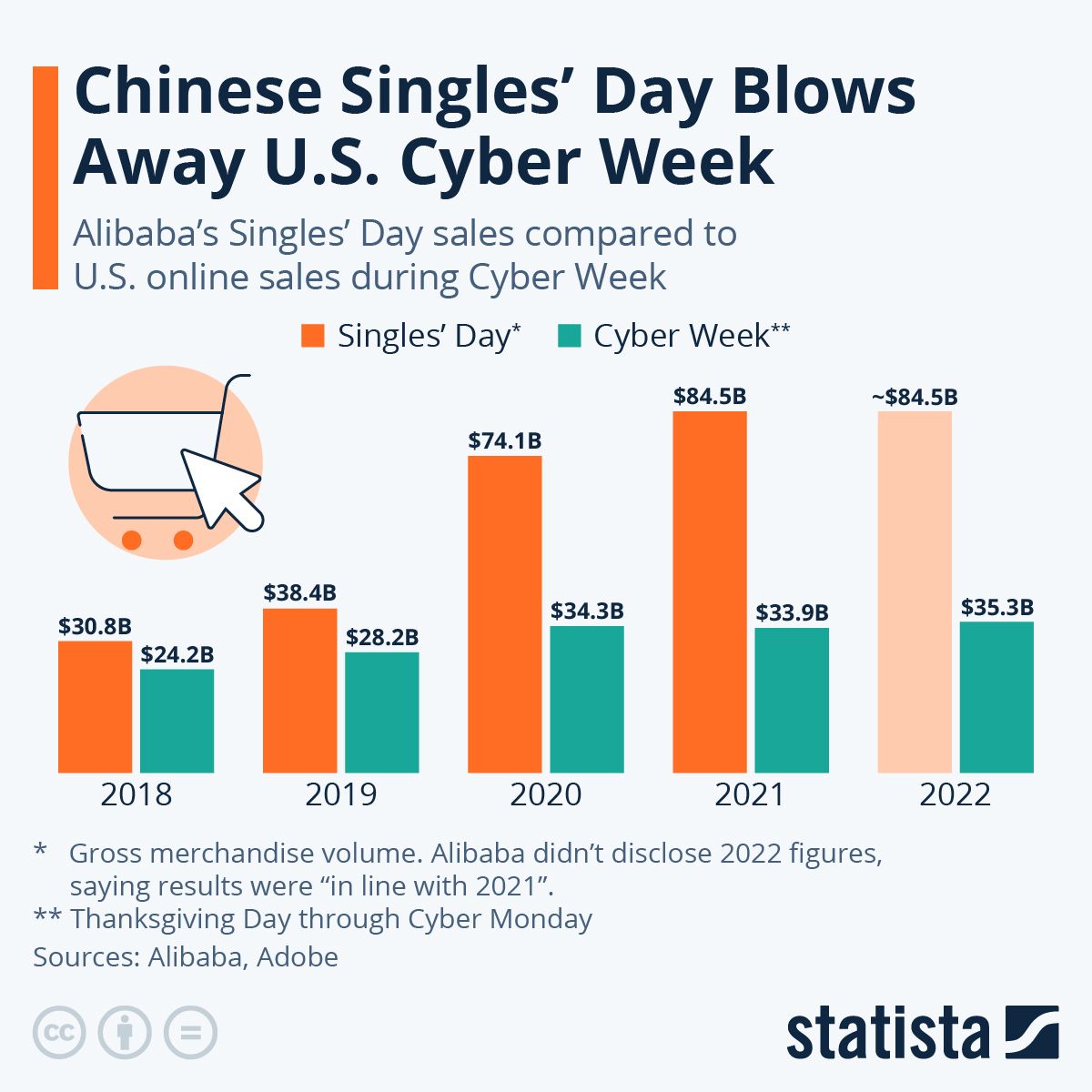 In 1993, students at Nanjing University in China created Singles' Day, or “Double 11” (celebrated on 11/11), as a playful anti-Valentine’s Day—a day dedicated to celebrating singlehood. In 2009, Alibaba transformed Singles' Day into a shopping event, turning a humble tradition into a multi-billion-dollar e-commerce sensation. Today, it is the largest online retail event globally, surpassing Black Friday and Cyber Monday combined in terms of sales and participation.